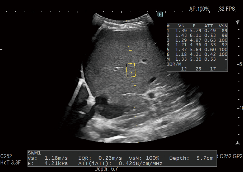 Doku sertliği, kesme dalgaları oluşturarak ve doku içindeki yayılma hızı (Vs) ölçülerek değerlendirilebilir. iATT, yağlı karaciğer miktarını tahmin etmek için bir indeks (ATT) ölçer. Analiz alanının daraltılması ve ekran kılavuzu sayesinde İB’nin (İlgi Bölgesi) belirlenmesini kolaylaştırır, bu nedenle ATT ölçümüne müdahale edecek çoklu yansımalar ve kan damarları gibi yapılar önlenir.